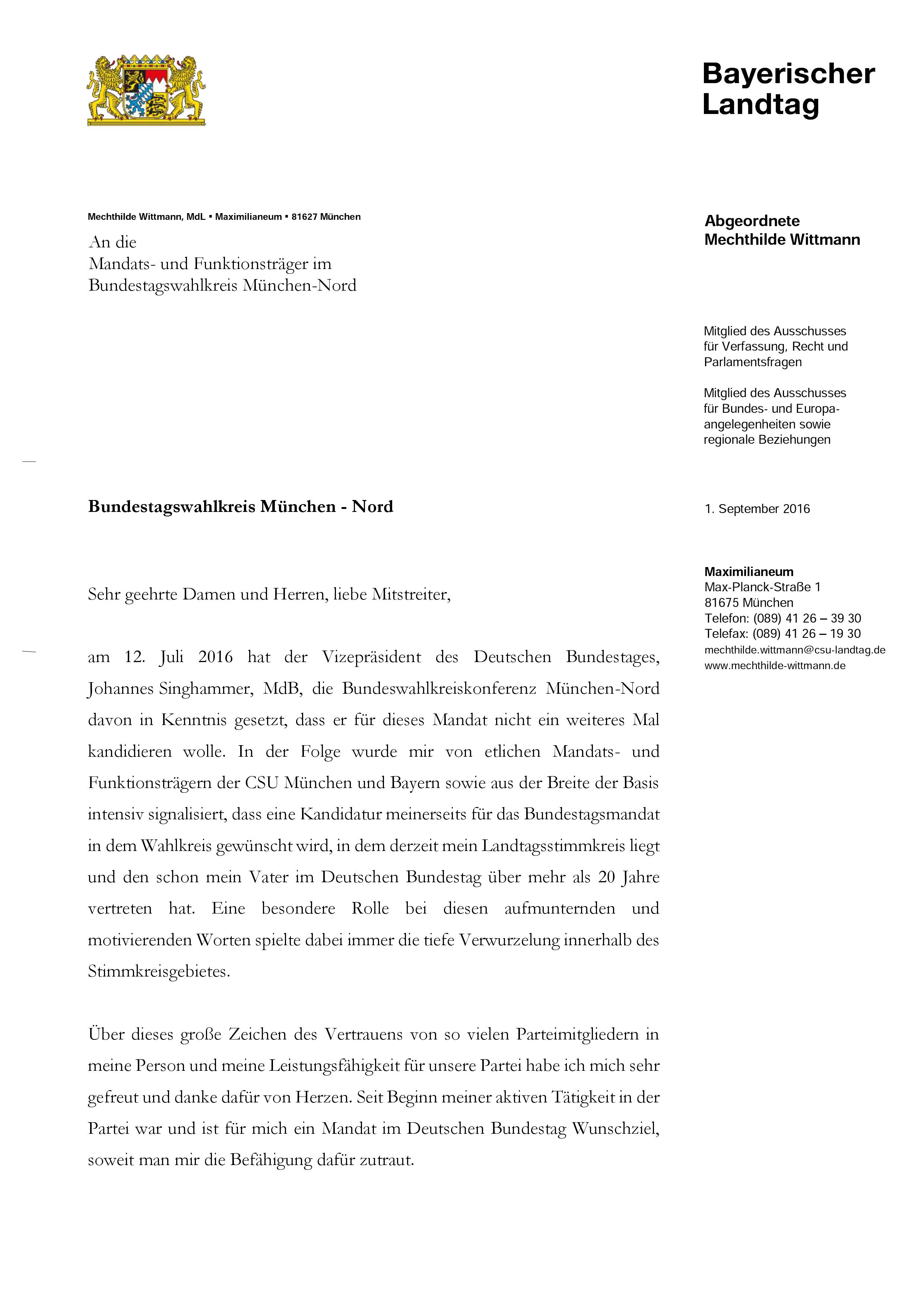 Ich bin überzeugt, ausgehend aus München weiterhin all meine Kraft und mein Können für unsere Partei und unser Bayern einzusetzen!